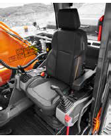 Cabin mới rộng rãi, tầm nhìn lớn và màn hình cảm ứng LCD 8 inch trực quan giúp điều khiển dễ dàng. Ghế hơi có sưởi/làm mát (tùy chọn), hệ thống điều hòa – sưởi cải tiến và bố trí tay chang chính xác mang lại cảm giác thoải mái suốt ca làm việc. Máy được trang bị công nghệ an toàn tiên tiến như AVM quan sát toàn cảnh, camera sau/bên và bảo vệ OPG/FOGS. Cảnh báo dây an toàn và nút dừng khẩn cấp giúp nâng mức an toàn lên tối đa.