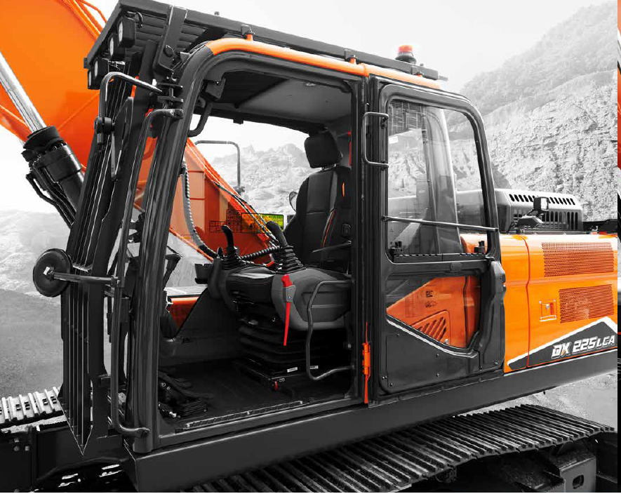 Cabin rộng, tầm nhìn lớn với màn hình cảm ứng 8 inch hiển thị rõ thông số và lịch bảo dưỡng. Ghế hơi tùy chọn sưởi/làm mát cùng hệ thống điều hòa cải tiến giúp người vận hành luôn dễ chịu. Máy tích hợp AVM 360°, camera sau/bên và khung bảo vệ OPG/FOGS giúp loại bỏ điểm mù và tăng an toàn. Hệ thống Fleet Management cho phép theo dõi máy từ xa, kết hợp mạng lưới phụ tùng toàn cầu giúp DX225LCA-7M vận hành ổn định, liên tục và hiệu quả lâu dài.