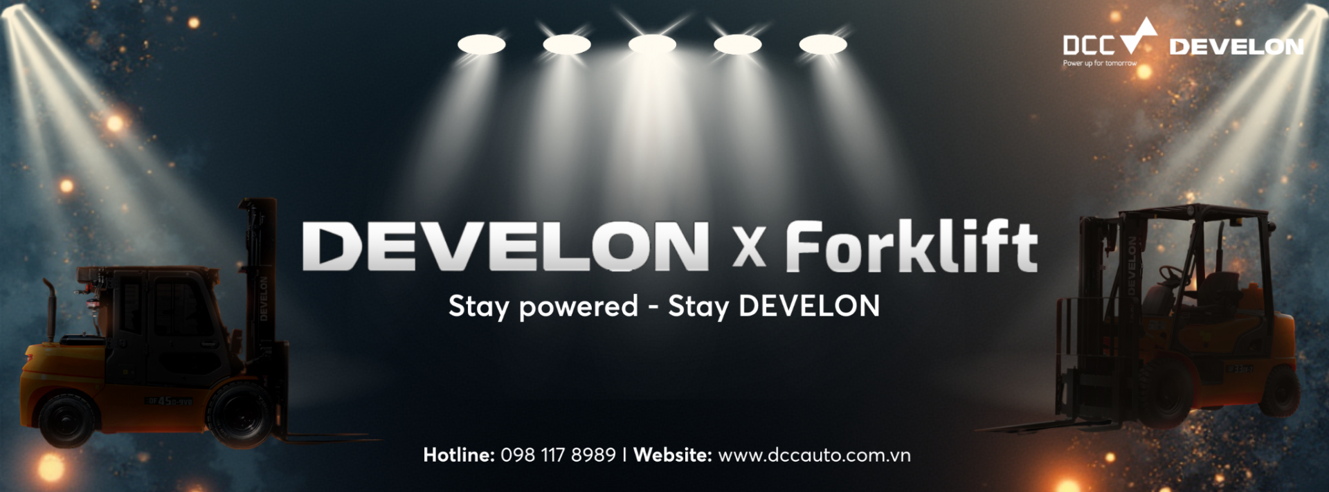 Nếu doanh nghiệp bạn đang tìm kiếm xe nâng bền bỉ, dịch vụ đáng tin cậy và giải pháp tối ưu cho kho. Hãy liên hệ DCC để được tư vấn chi tiết về dòng xe nâng Develon phù hợp với doanh nghiệp của bạn.
